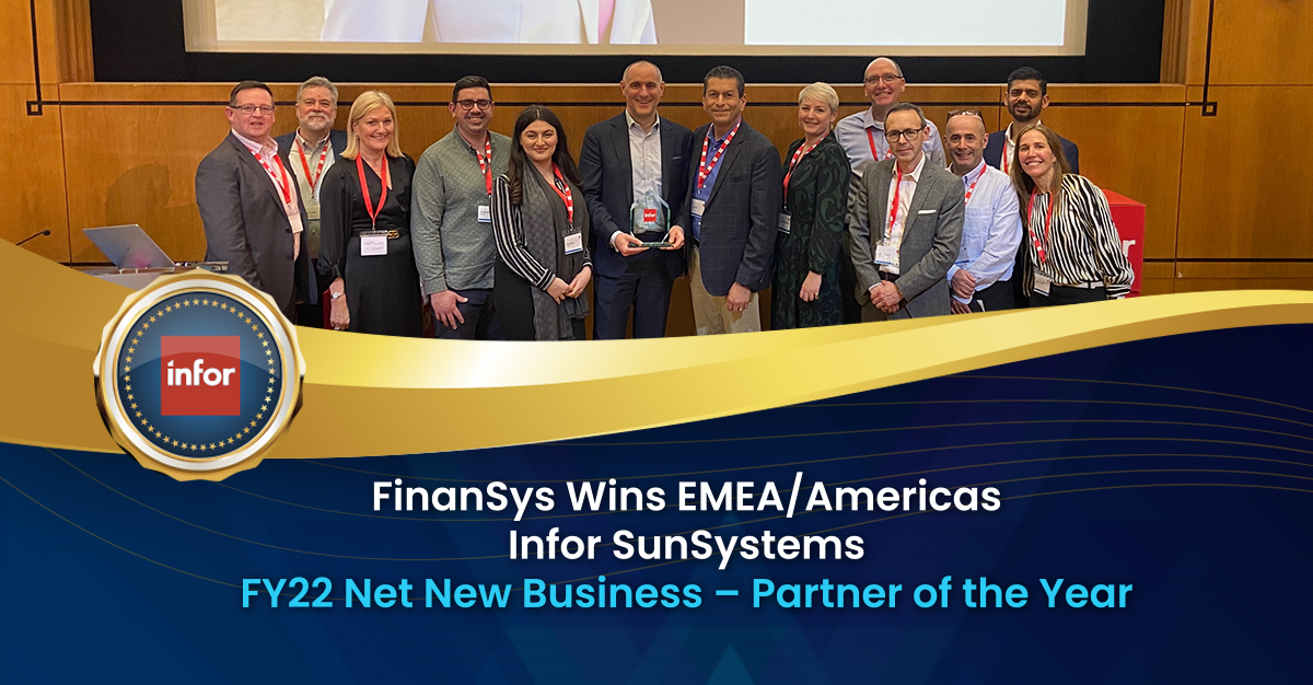 FinanSys, as leading providers of SunSystems, was proud to be honoured with the FY22 Net New Business – Partner of the Year award for the 2nd consecutive year.