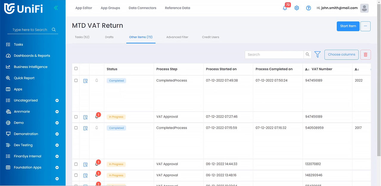 Build and tailor your ideal workflows for the applications you’ve created or for other applications outside of UniFi. Enhance your workflows with powerful automation, integrations, custom views, powerful reporting with full business intelligence, and more.